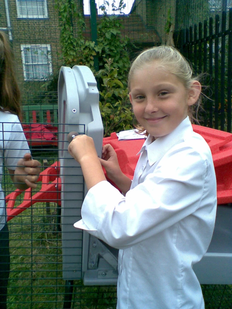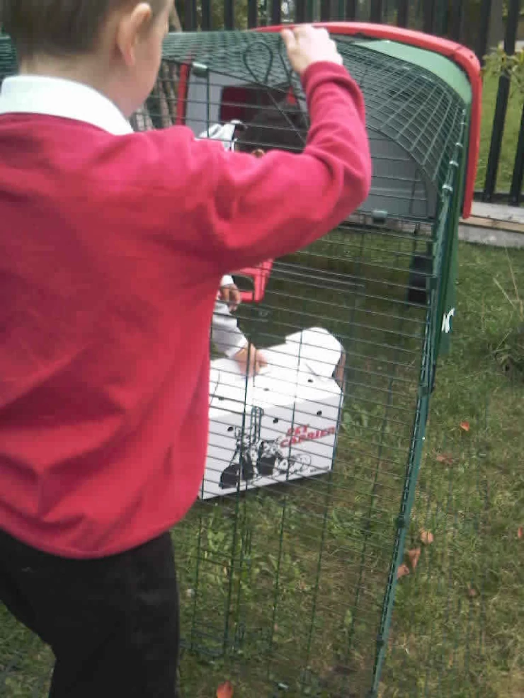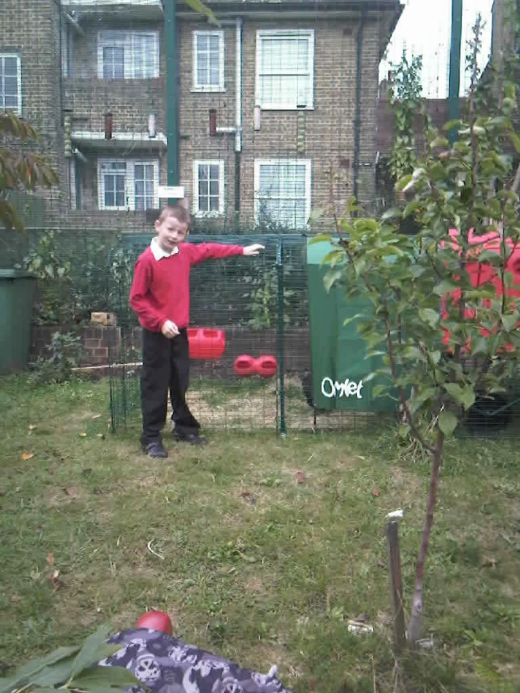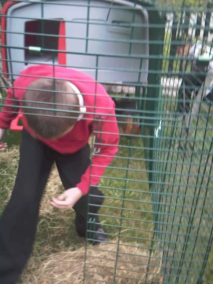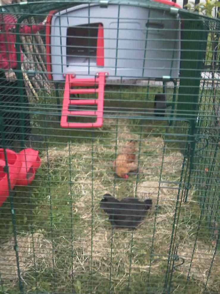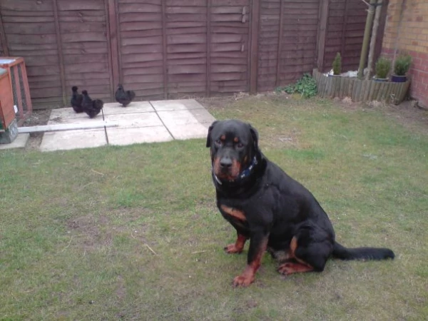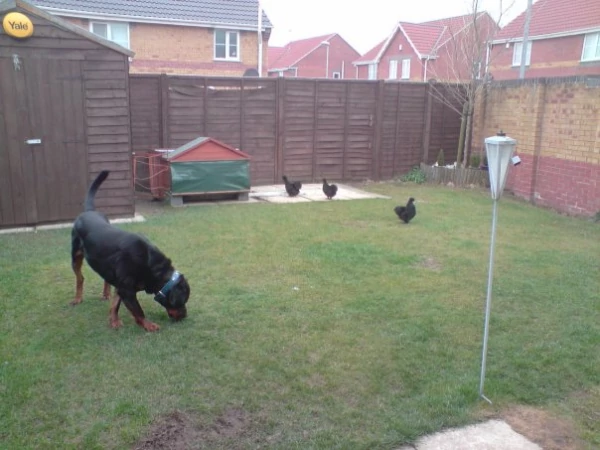 Caption: We hadden een paar kinderziektes toen we verhuisden en de honden dezelfde tuin moesten delen met de kippen, ik was zo trots op jd onze rottweiller toen hij uiteindelijk Got samen met hen.