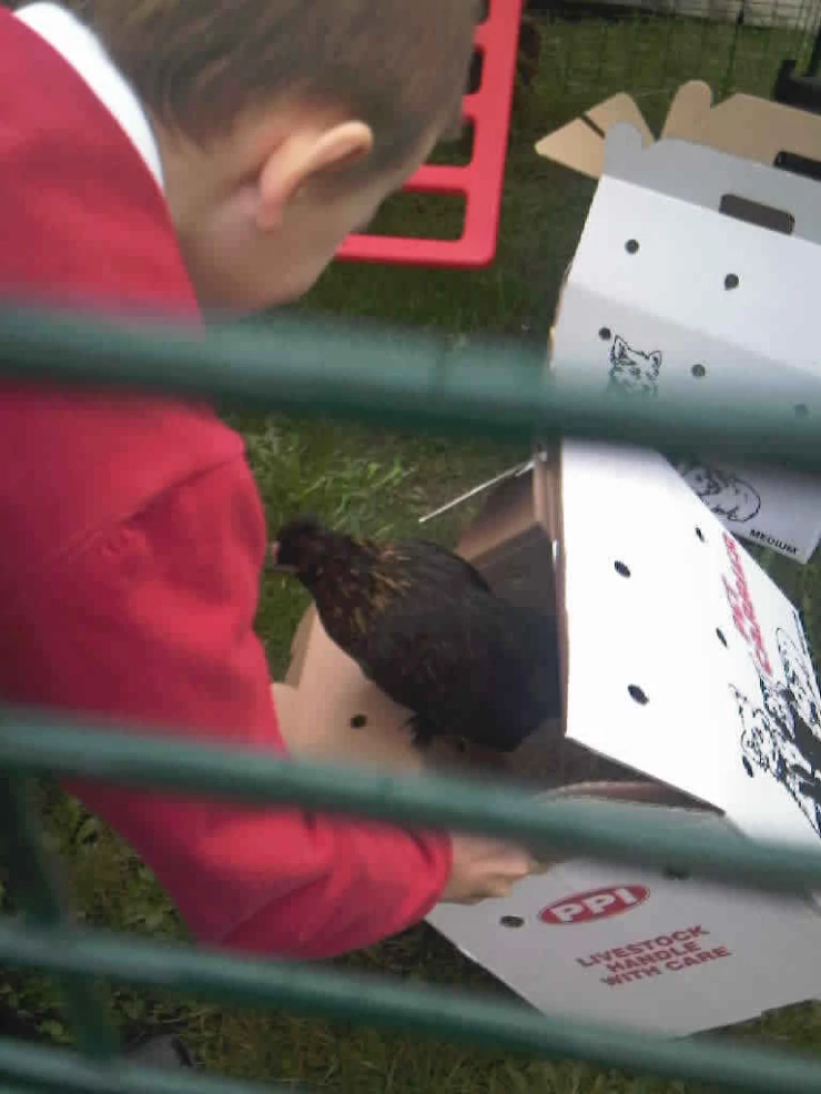 Caption: De kuikens waren tien dagen oud, ik kocht de broedeieren van ebay en broedde ze thuis uit.