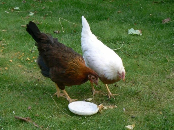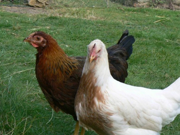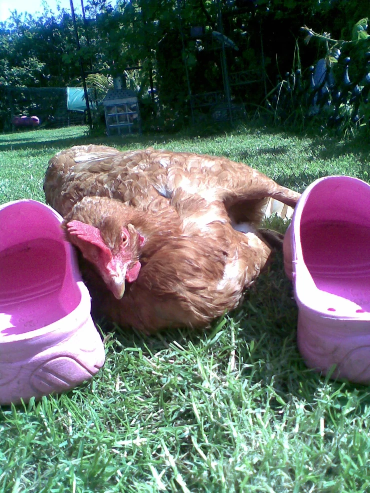 Caption: Audrey...pile leghorn. ethel...welsummer. (2007-heden) audrey en ethel's eerste dag van vrijheid!