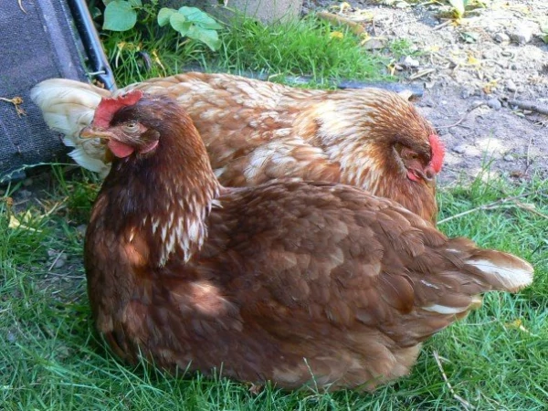 Caption: Gert & eadith...gingernuts (2006-heden) mijn originele Omlet chooks ^_^ gert (de donkere) is inmiddels overleden en eadith legt geen eieren meer maar ze is nog steeds koningin van de slaapplaats.