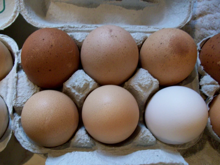 Caption: Eieren. boven van links naar rechts...welsummer/faverolles/gingernut. onder van links naar rechts.....sussex/amberlinks/leghorn.