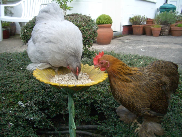 Caption: Audrey...pile leghorn. ethel...welsummer. (2007-heden) audrey en ethel als hennen, het zijn prachtige vogels. mijn advies, koop altijd zuivere rassen!