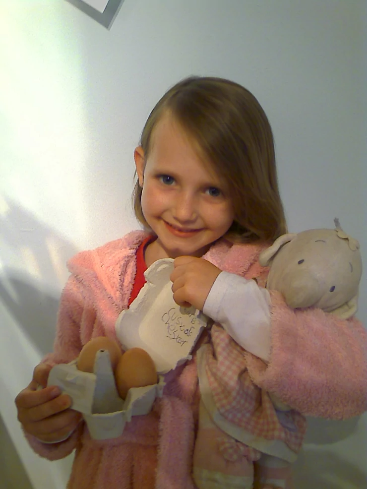 Caption: Twee eieren in de eerste 24 uur! kers is erg blij om het ontbijt van morgen te zien!
