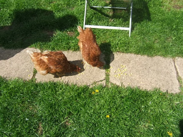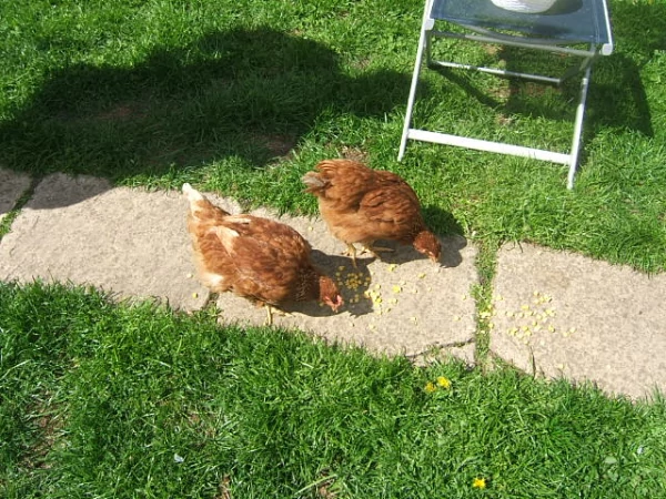Caption: Het middelste kuiken zit langzamer in de veren dan de andere twee en de staartveren groeien schuin omhoog. haan?