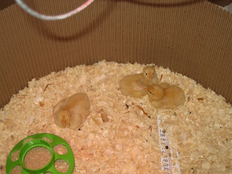 Caption: Mijn langverwachte 3 buff orpington kuikens zijn net geplaatst in de broedmachine 8 april 2009