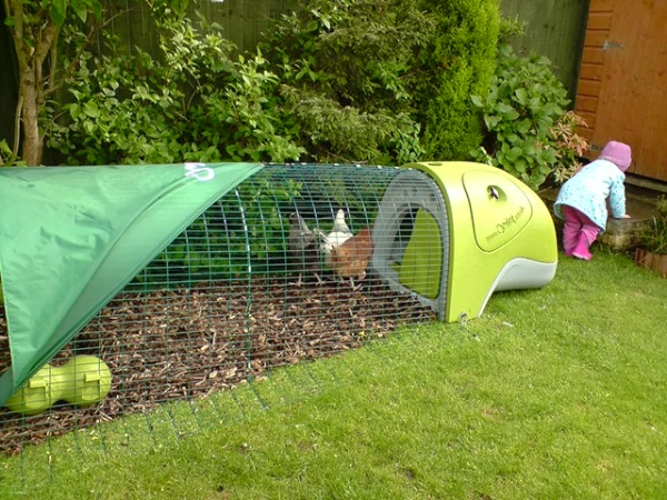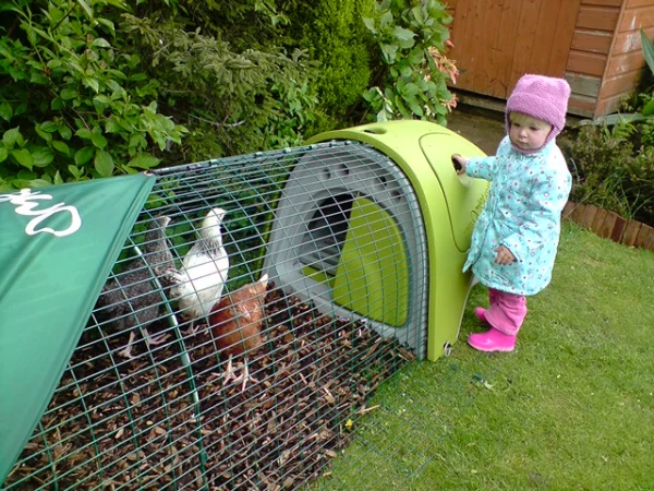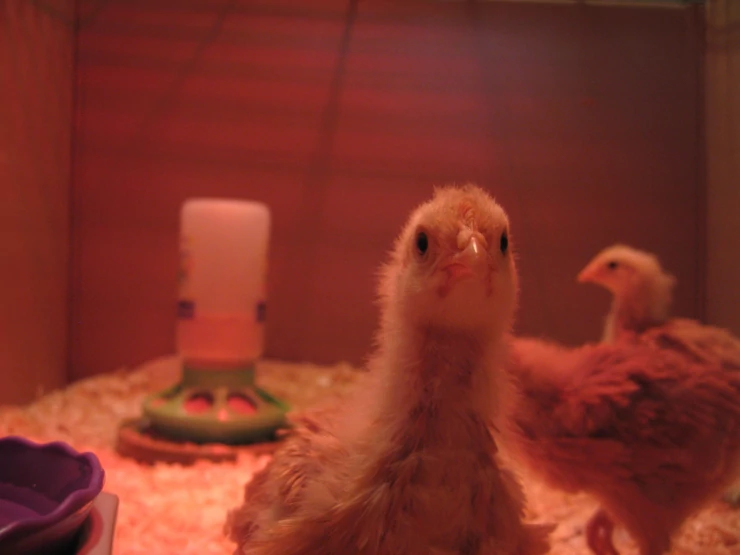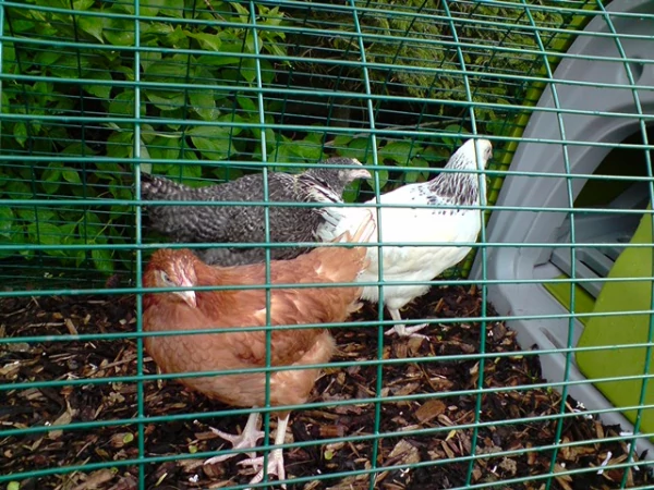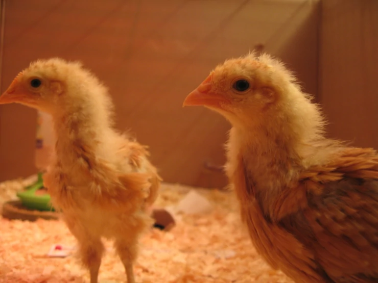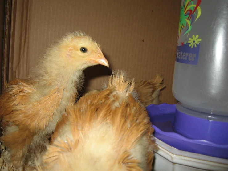Caption: Mijn pekin kuikens zijn te jong om Go met de banties in de Eglu dus zijn ze in de hondenkrat voor nu. als je Goed kijkt zie je mijn 3 grote meisjes zitten tussen de twee rennen, lol