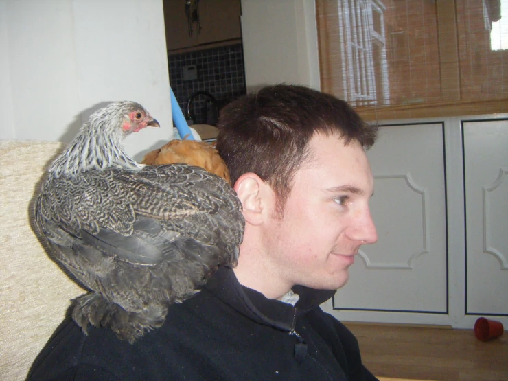 Caption: Mijn man met de pekin kuikens. dit zijn zijn favorieten. hij wilde in het begin geen kippen maar hij houdt er nu net zoveel van als ik.