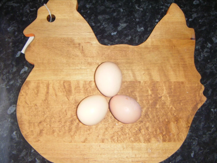 Caption: Mijn grote meisjes eieren op mijn kippen snijplank