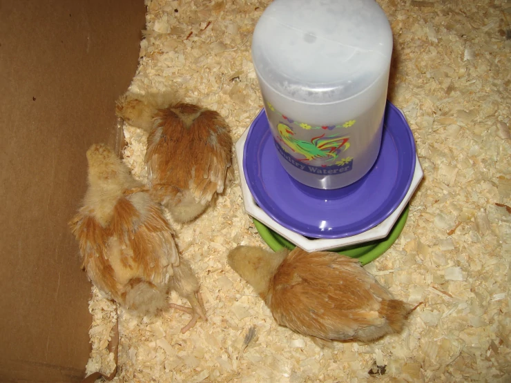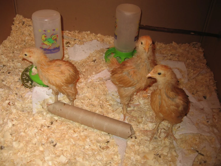 Caption: 4 09 mei 4 weken oud nog steeds twijfels over het geslacht van het kuiken in het midden alle 3 waren verondersteld hennen te zijn. kijk naar de houding en de staartveren.