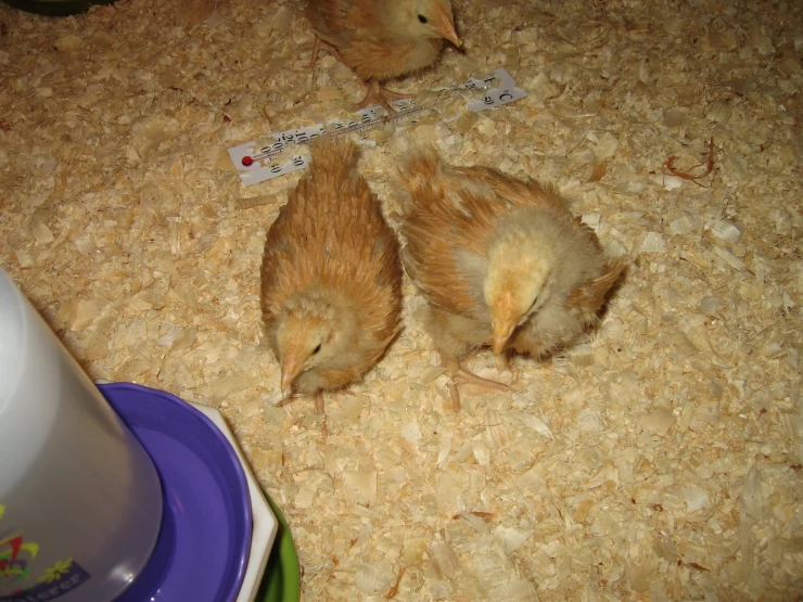 Caption: Good shot van alle 3 kuikens vederontwikkeling 3 weken oud
