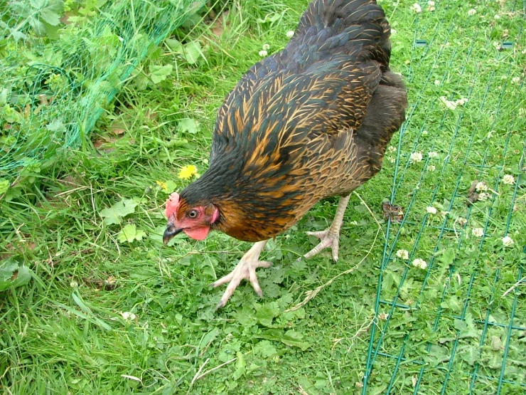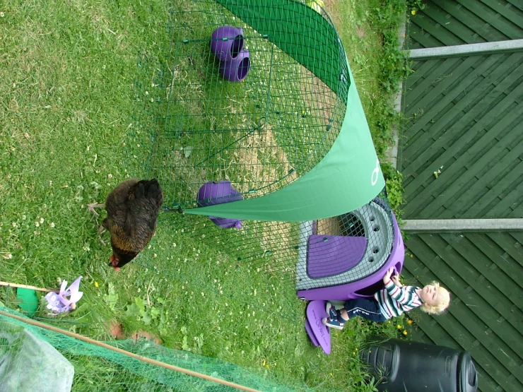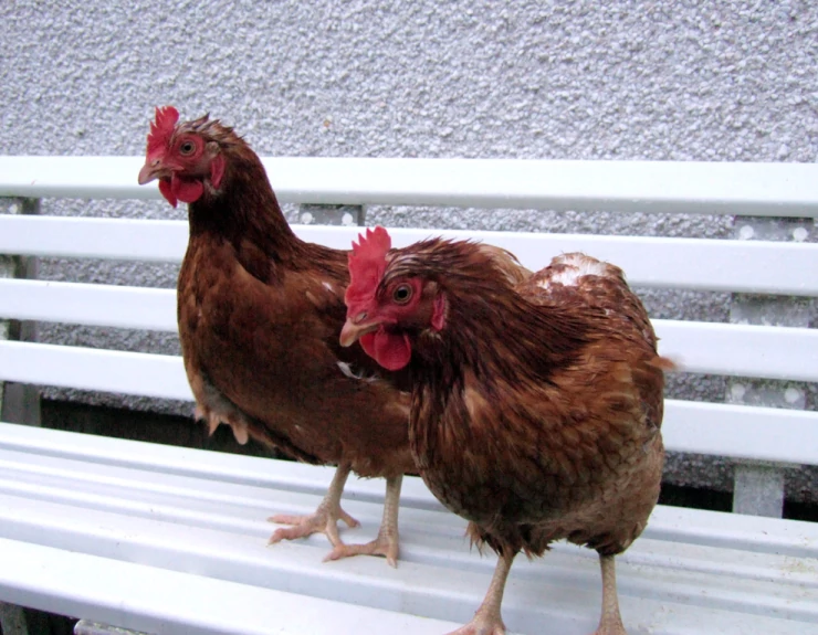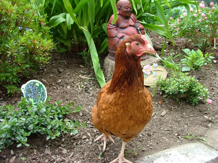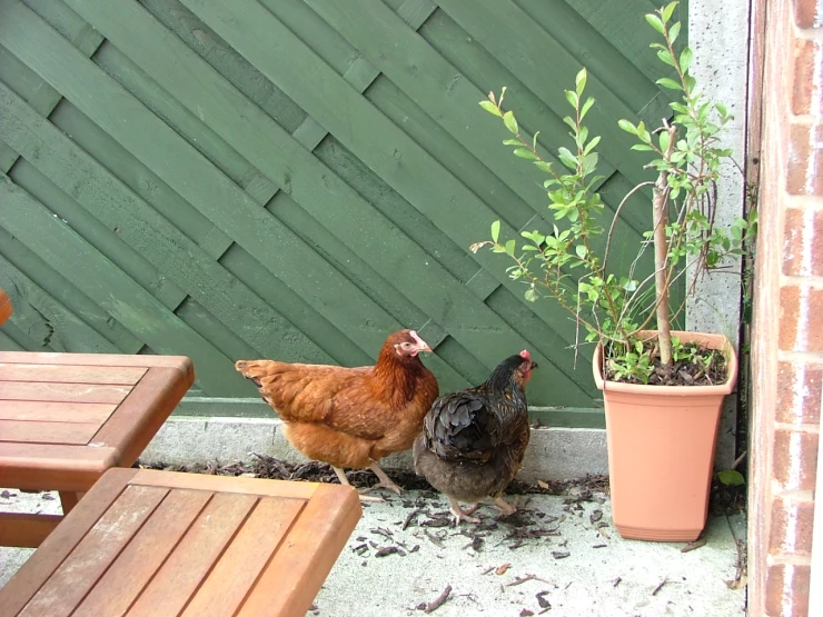 Caption: Kippen helpen bij het schoonmaken van de patio