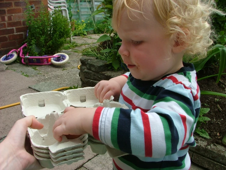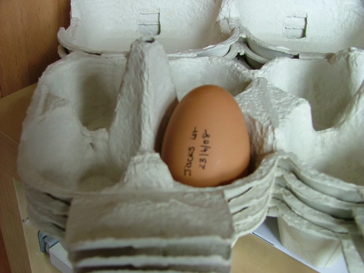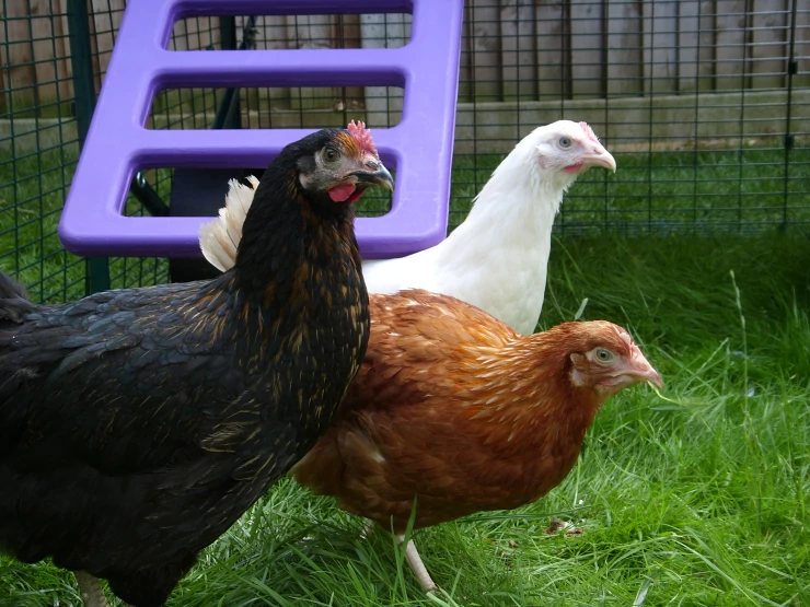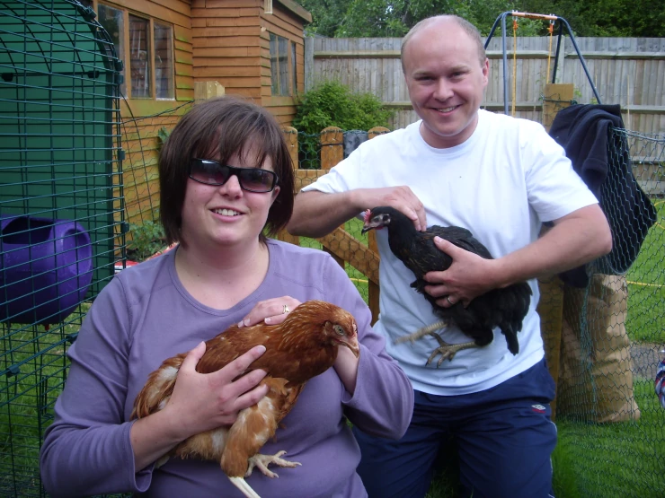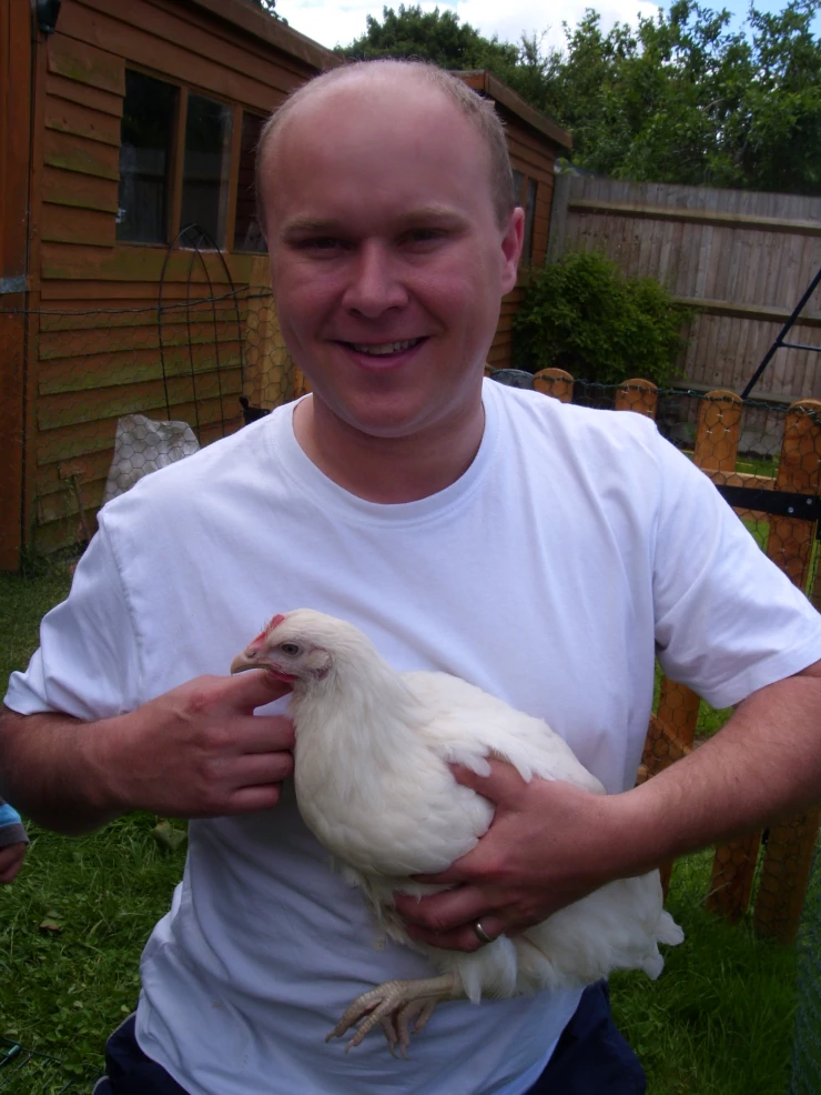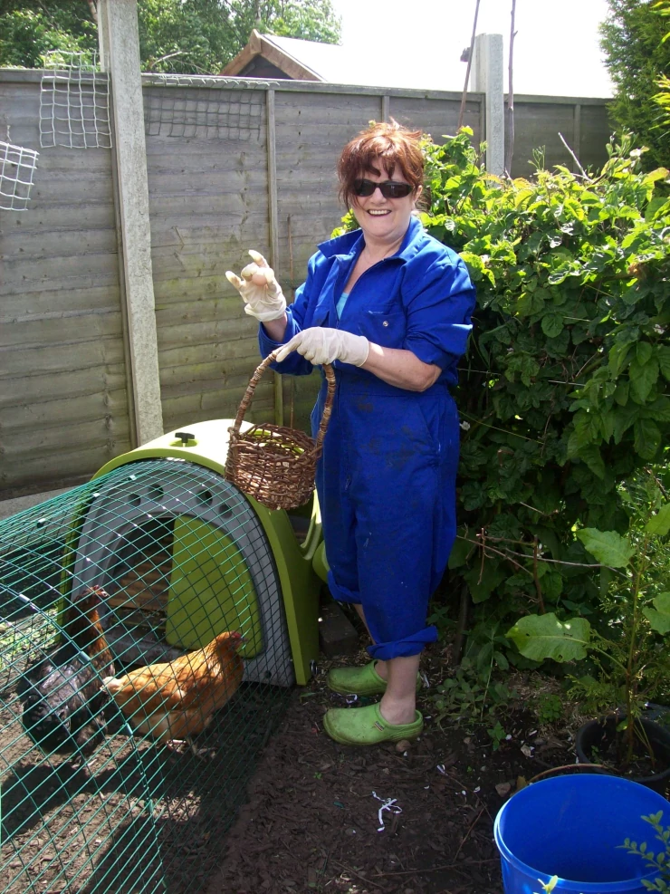 Caption: Onze twee kippen heten Hilda en Evadne, (genoemd naar het duo Hinge and Bracket), en Hilda heeft haar eerste ei gelegd.