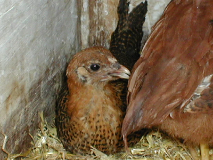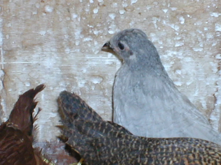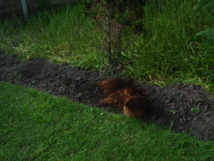 Caption: Nadat ze het zorgvuldig verstrekte 'vogelzand' hebben vermeden, geven de drie dames de voorkeur aan ouderwetse modder voor hun eerste stofbad.