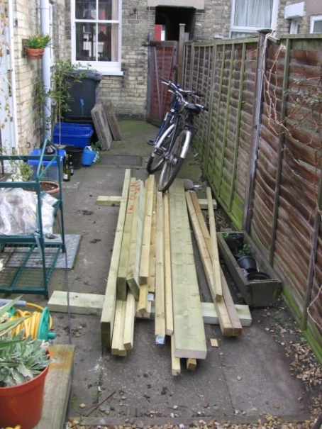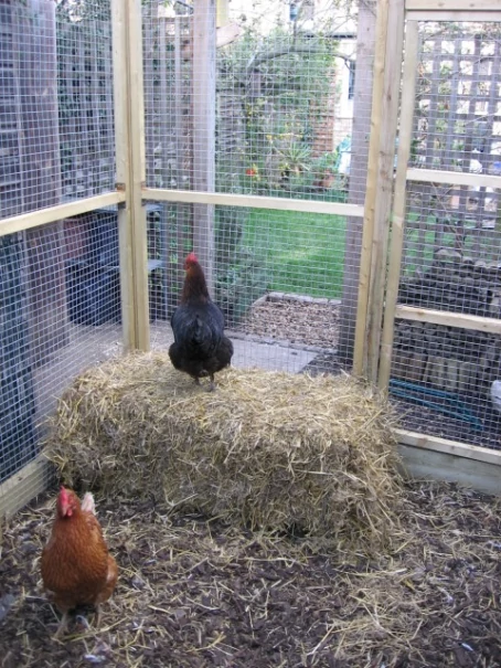 Caption: nog steeds geen kippen maar .. de sneeuw begin februari gaf me de mogelijkheid om een tijdelijke kip te maken voor de Eglu.