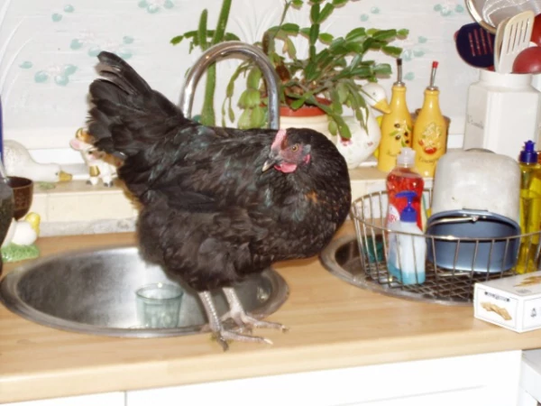 Caption: nog steeds geen kippen maar ... de sneeuw begin februari gaf me de kans om een tijdelijke kip te maken!