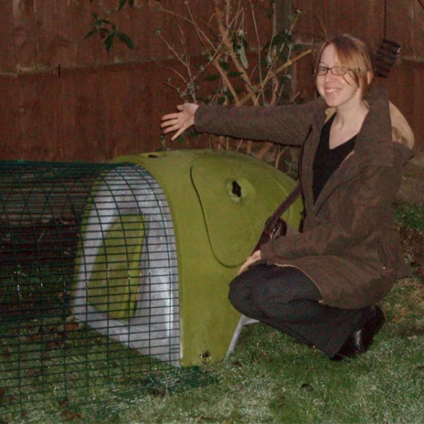 Caption: Voor mijn 27ste verjaardag hebben mijn partner Gary en mijn ouders samen geknuppeld om een geweldige Eglu voor me te kopen! Ik moet nu gewoon wat kippen halen ...
