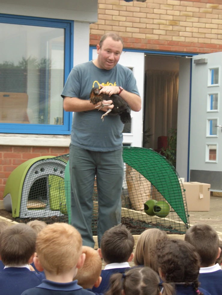 Caption: Mijn partner Gary en onze ouders hebben samen geknuppeld om een geweldige Eglu voor mijn 27e verjaardag te kopen! Ik heb nu gewoon wat kippen nodig!